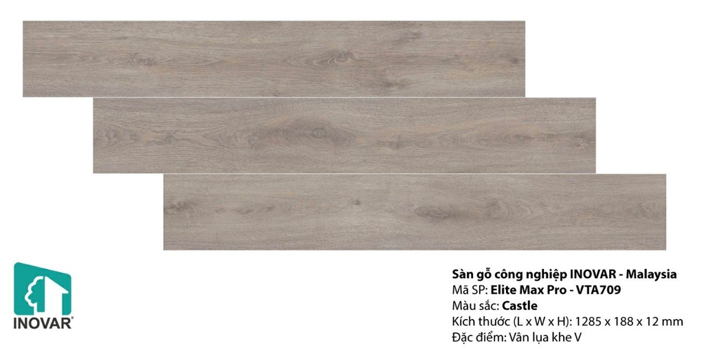 Sàn Inovar 12mm bản to vân lụa, hèm V mã VTA709